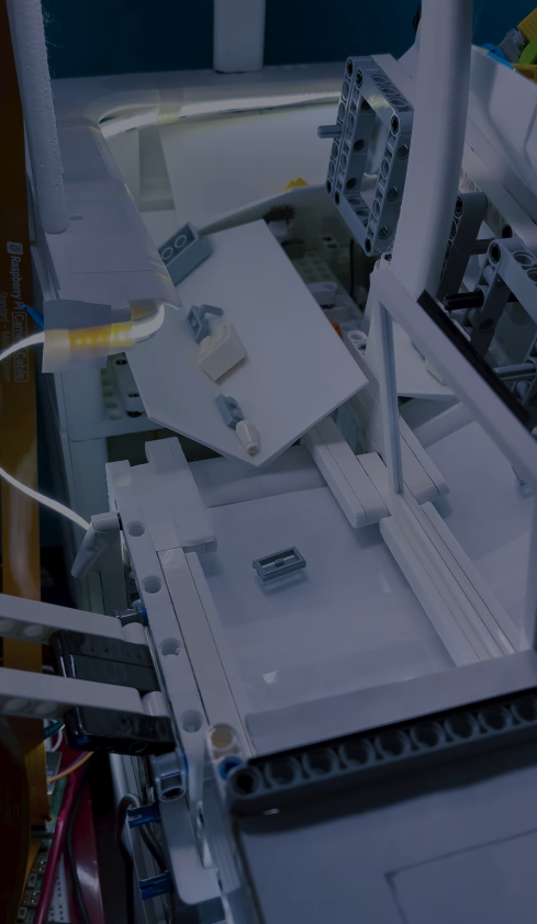 - Transparent Belt - The machine uses a transparent conveyor belt. This is a very unique choice, which enables the scanning of the underside of LEGO® parts.