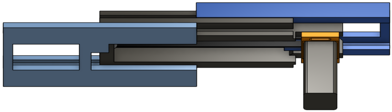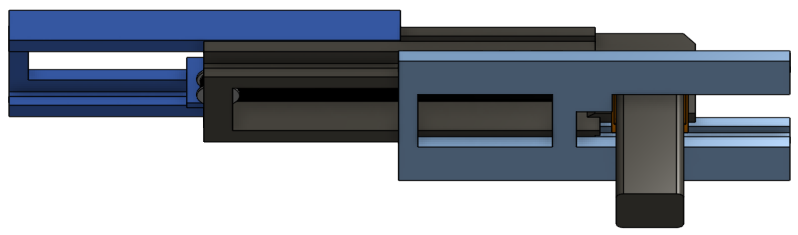 At this stage, the design does not incorporate any linear rails or bearings. Instead, it relies solely on PLA plastic surfaces sliding directly against each other. While this keeps the construction lightweight and simple, I’m uncertain about its long-term durability. This aspect will need to be closely monitored for wear over time.