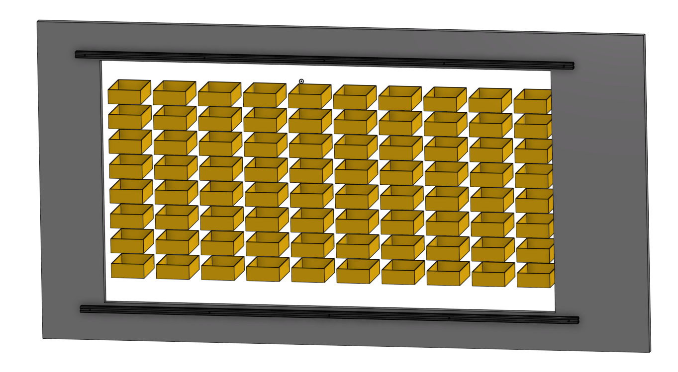 For the first prototype setup, I am targeting a 10-by-8 grid of bins. To ensure smooth retrieval, I’ve accounted for small gaps between bins, bringing the total estimated dimensions of the storage system to approximately 1.65m x 0.8m. This compact footprint is ideal, as it allows the unit to fit neatly behind the existing sorting machine while still providing high storage capacity.